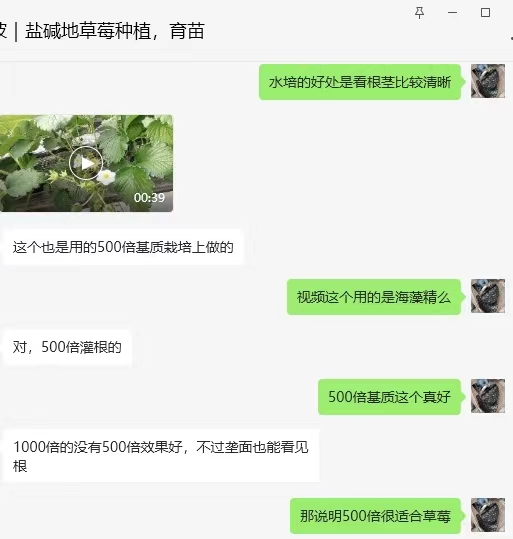 山西太原種植草莓的樊總反饋,用藍寶的海藻精稀釋500倍對草莓苗進行灌根,根系在壟面上清晰可見,沒用海藻精的壟面上見不到根系